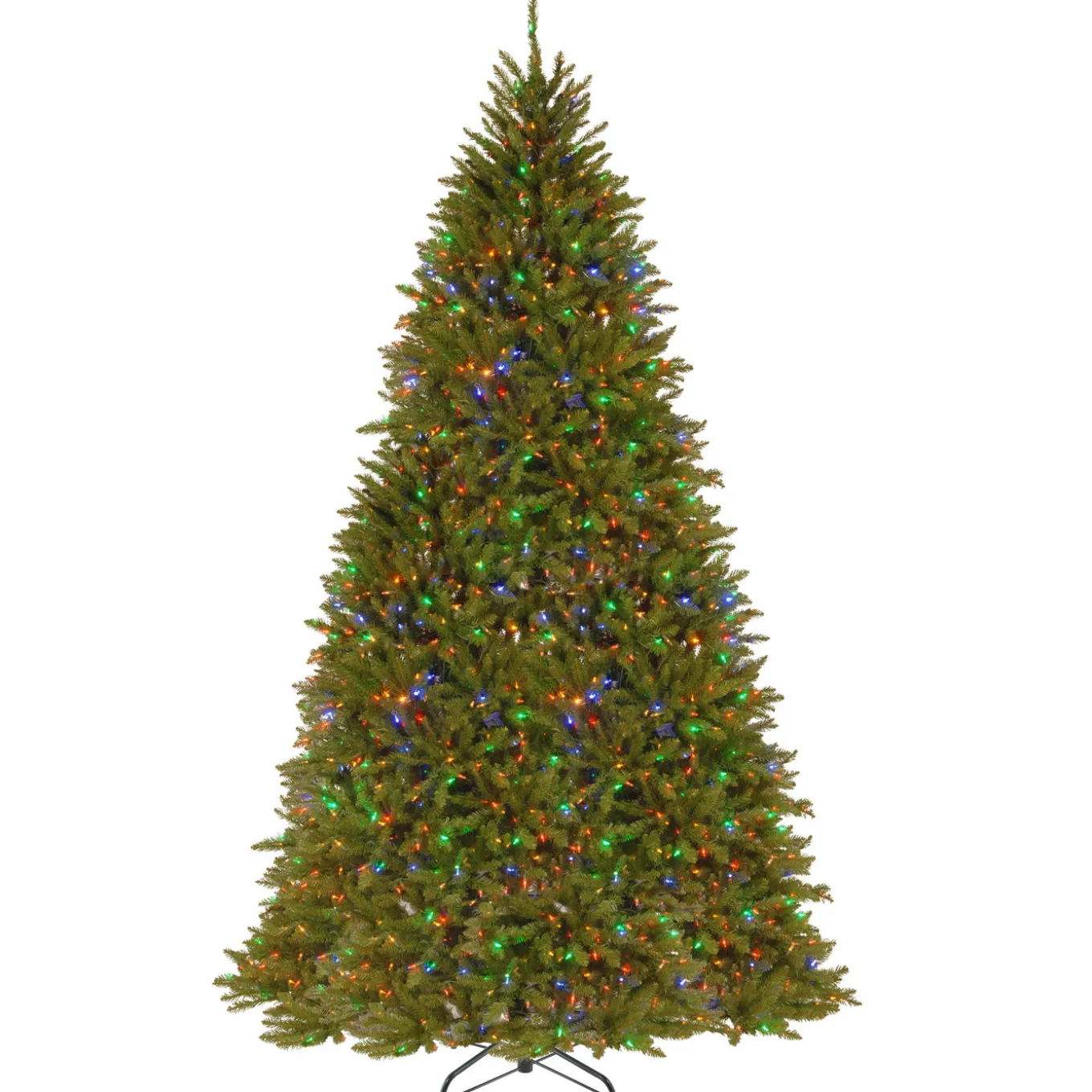 This Dunhill Fir tree features the PowerConnect through-the-pole lighting system that eliminates the need for connecting multiple light strings. It is pre-string with 1200 Dual Colorlights that change from warm white to multicolor with the touch of a button. Included is a foot pedal switch to control 10 different light colors and actions. This tree features hinged branch construction for ease of assembly. Sturdy metal tree stand is included.