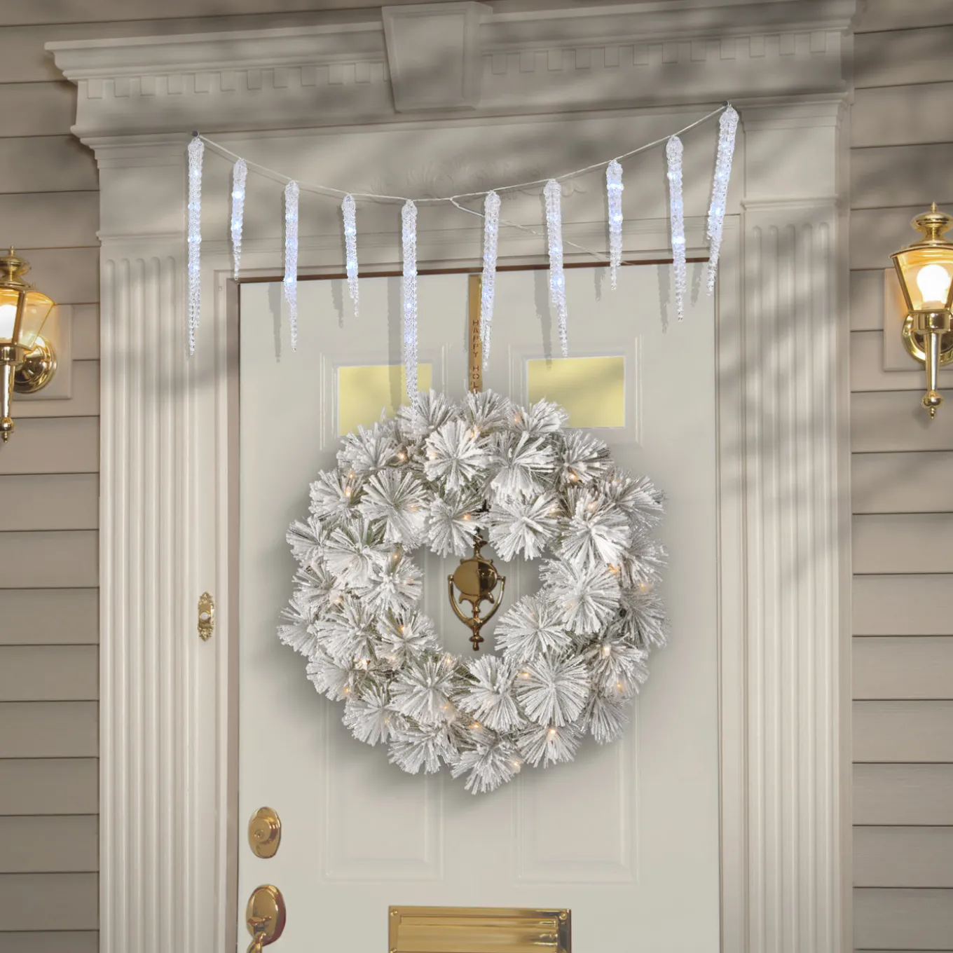 This charming set of 10 crystal icicles string lights features 29 cool white LED lights, creating a whimsical winter ambiance for your holiday décor. Each icicle adds a touch of sparkle and elegance, perfect for draping along mantels, doorways, or outdoor eaves. These lights are ideal for enhancing your festive atmosphere, giving your space a magical, frosty look that captures the spirit of the season!