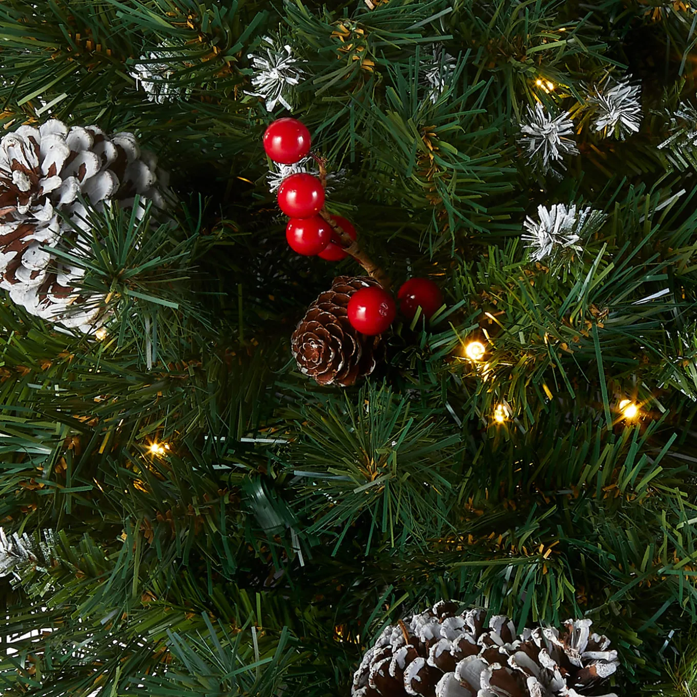 - Designed with a Frosted Berry branch base, this pre-lit artificial Christmas Urn Filler is 18 inches wide and decorated with pine cones, berry clusters and frosted branches.