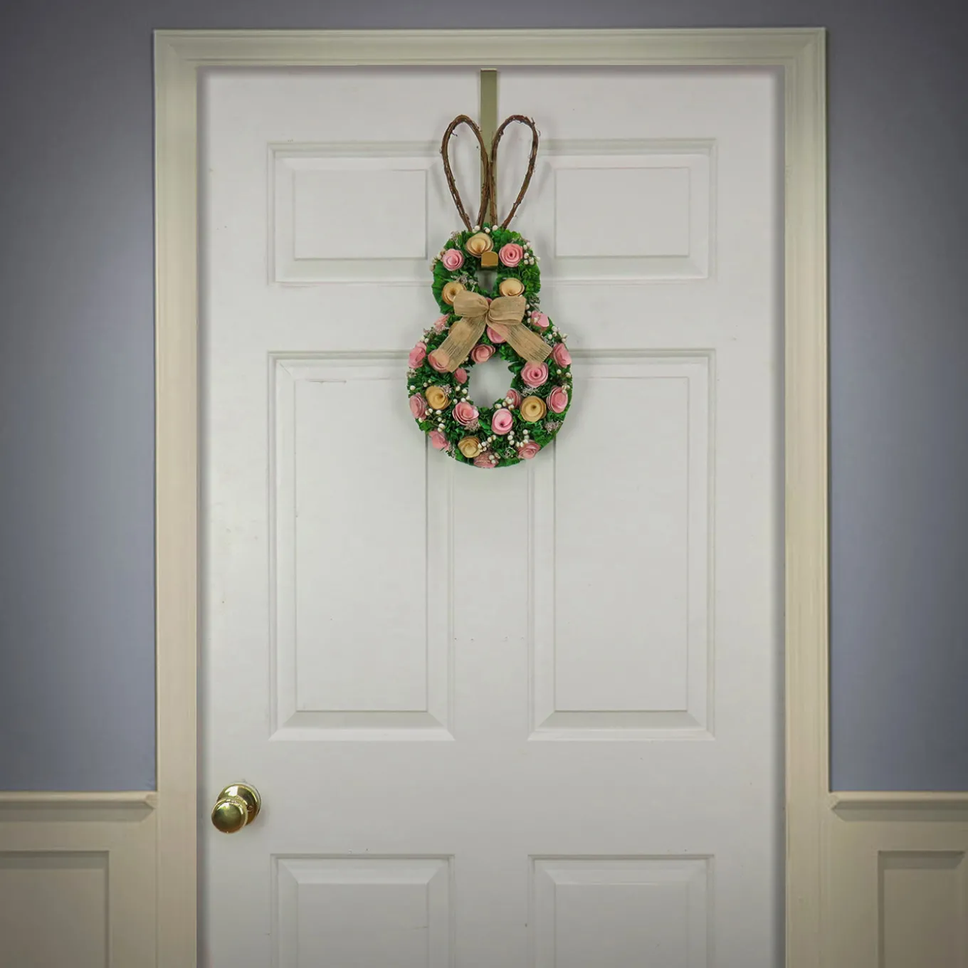 - Hang this delightful decoration on a door, wall, window or mantle indoors to add a fun and natural flair to any Easter-themed decorative arrangement