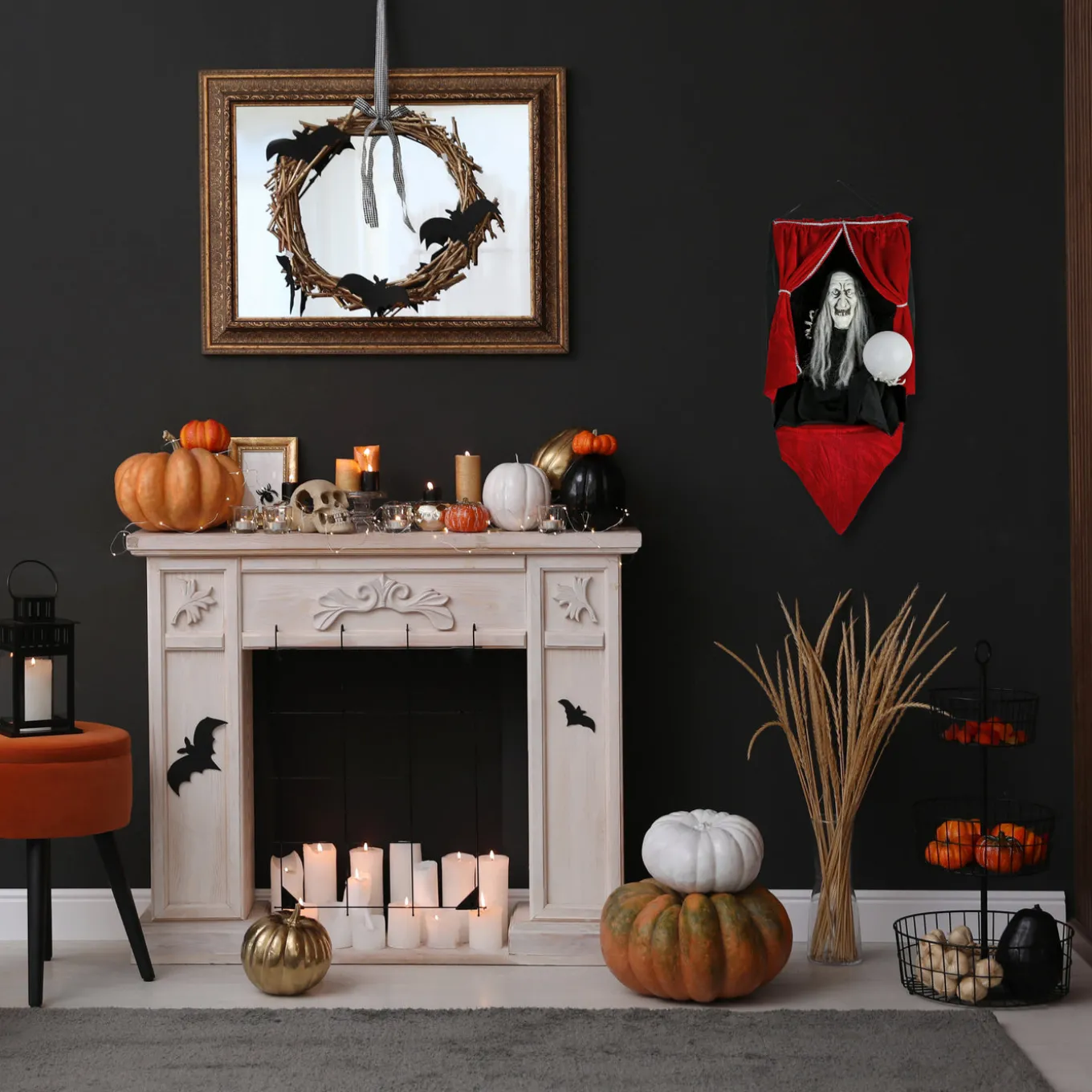 - Place this spectacularly spooky decoration in an indoor location or covered porch to greet guests, scare Trick or Treaters and add a scary ambience to any Halloween decorative assortment