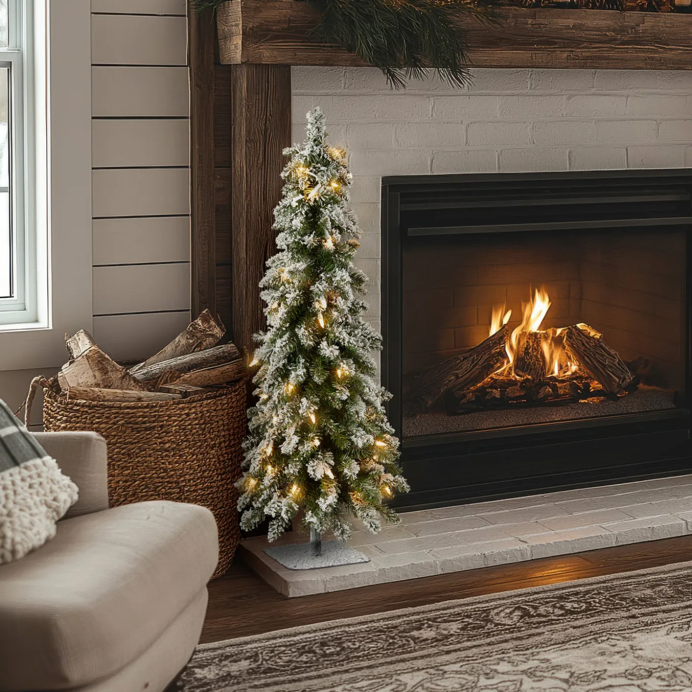 3 ft. Pre-Lit Snowy Downswept Forest Tree with Clear Lights