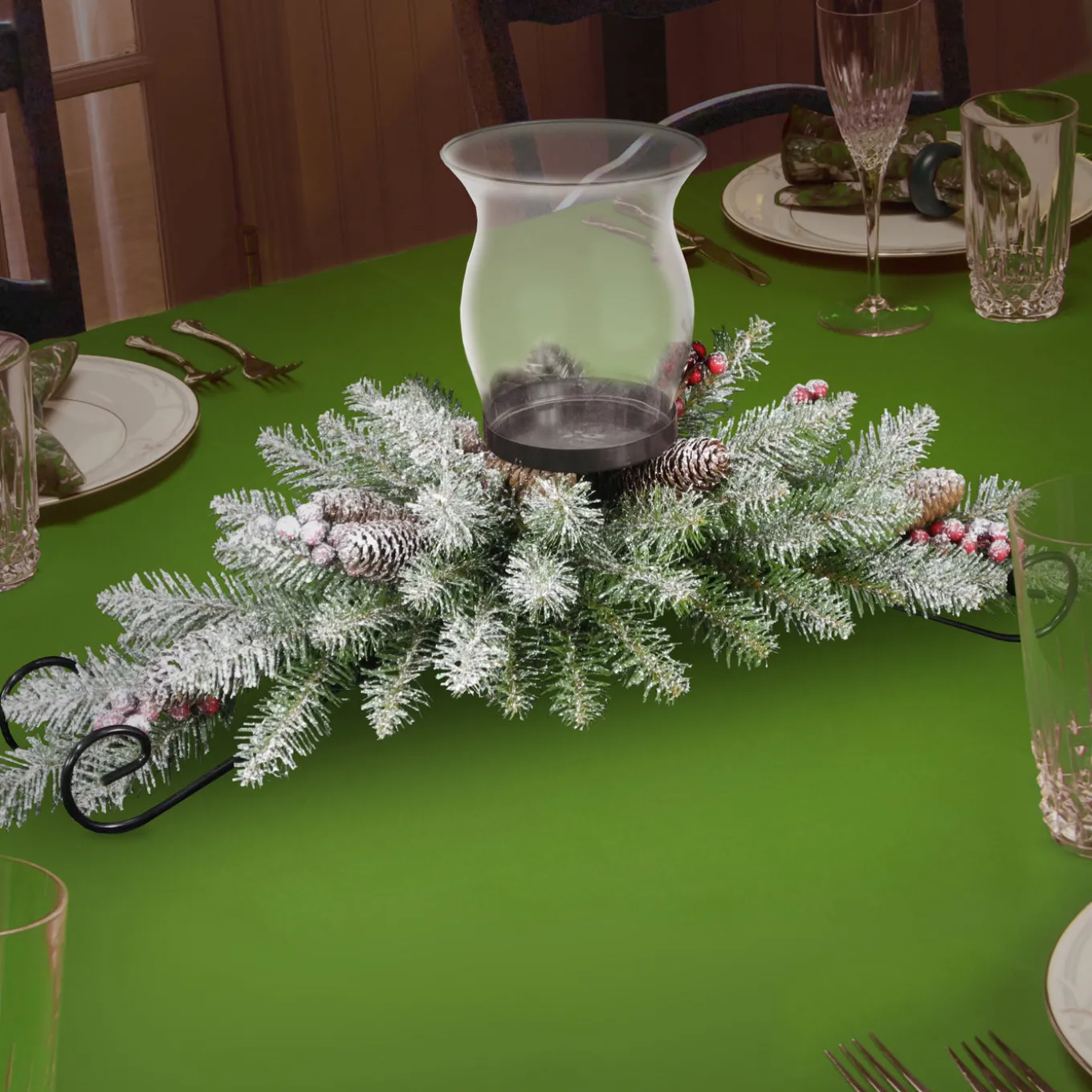 - Designed with a Dunhill Fir branch base, this artificial Christmas Candleholder Centerpiece is decorated with red berries, frosted pine cones and snow dusted branch tips.