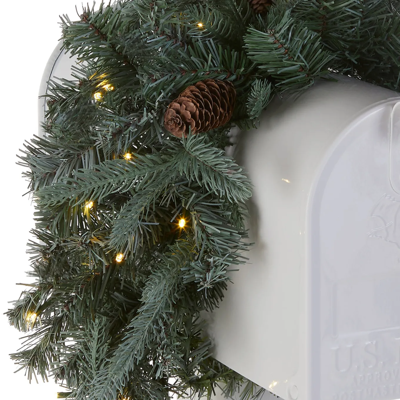 - Designed with an Arctic Spruce branch base, this mailbox swag is decorated with pine cones and features over one hundred individually crafted branch tips, creating a lush and full bodied decoration. Featuring hundreds of Feel Real individually crafted branch tips to create full bodied branches, this mailbox swag is designed to look and feel lifelike.