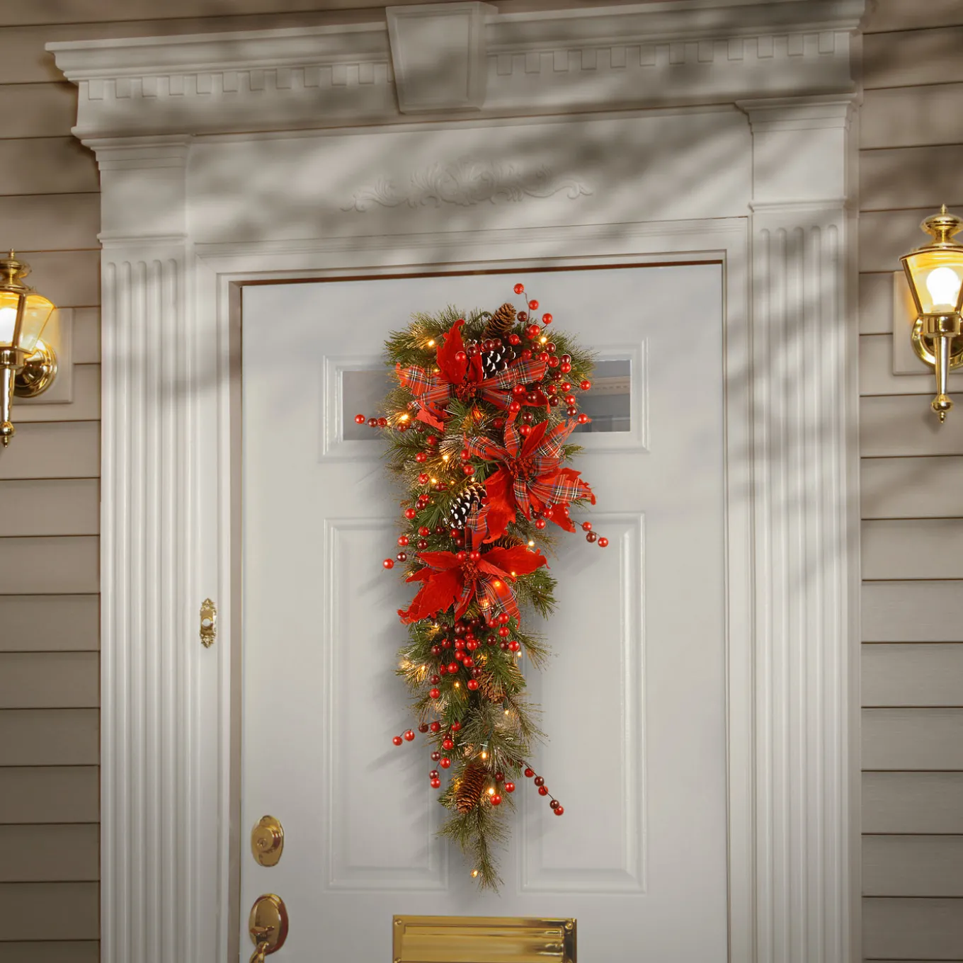 Pre-Lit Evergreen Assortment Set of 2 Entrance Trees, 1 Wreath, 1 Garland
