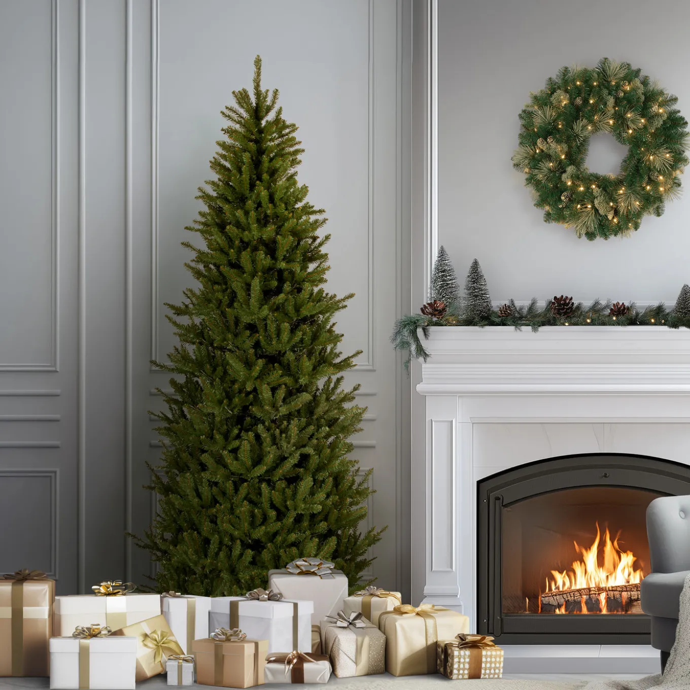 Slim Christmas trees are popular for their slender, space-saving design, making them ideal for smaller spaces or for adding a festive touch without taking up too much room.