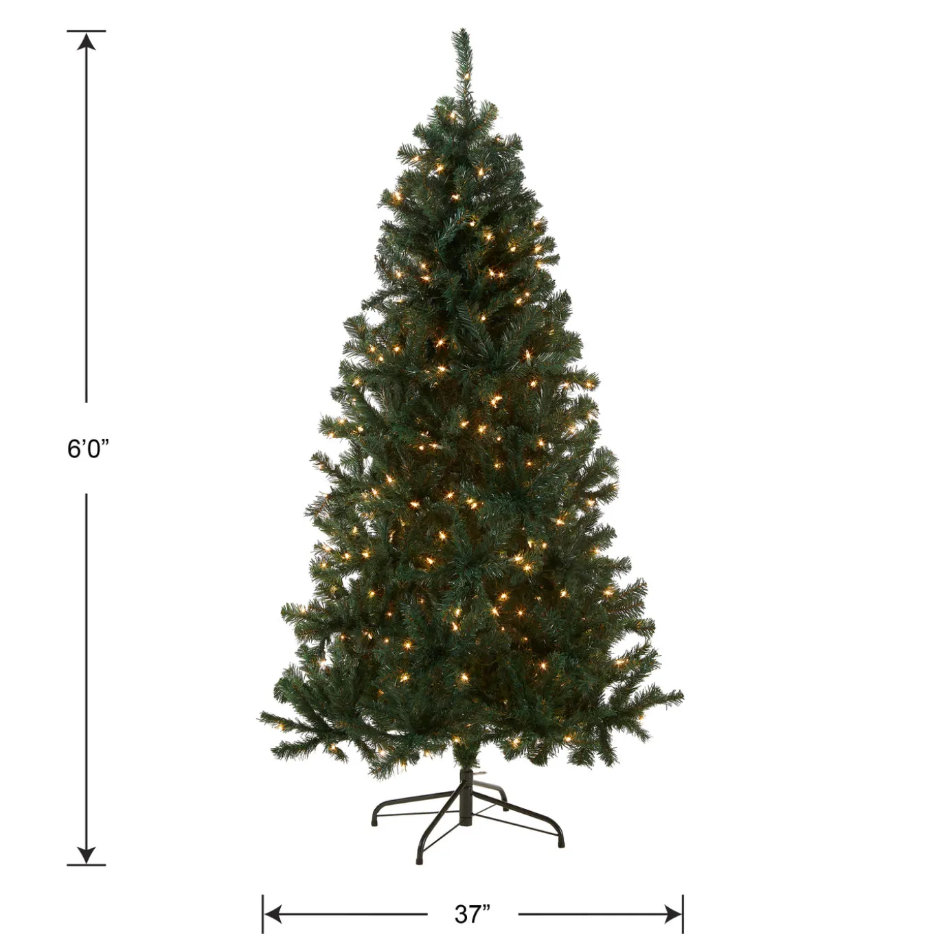 The Acacia is a full body tree featuring a generous number of branch tips for holding holiday trimmings. It ispre-lit with 300 clear lights that remain lit even if a bulb burns out. This tree features hinged branches for ease of assembly. Sturdy folding metal tree stand is included. The