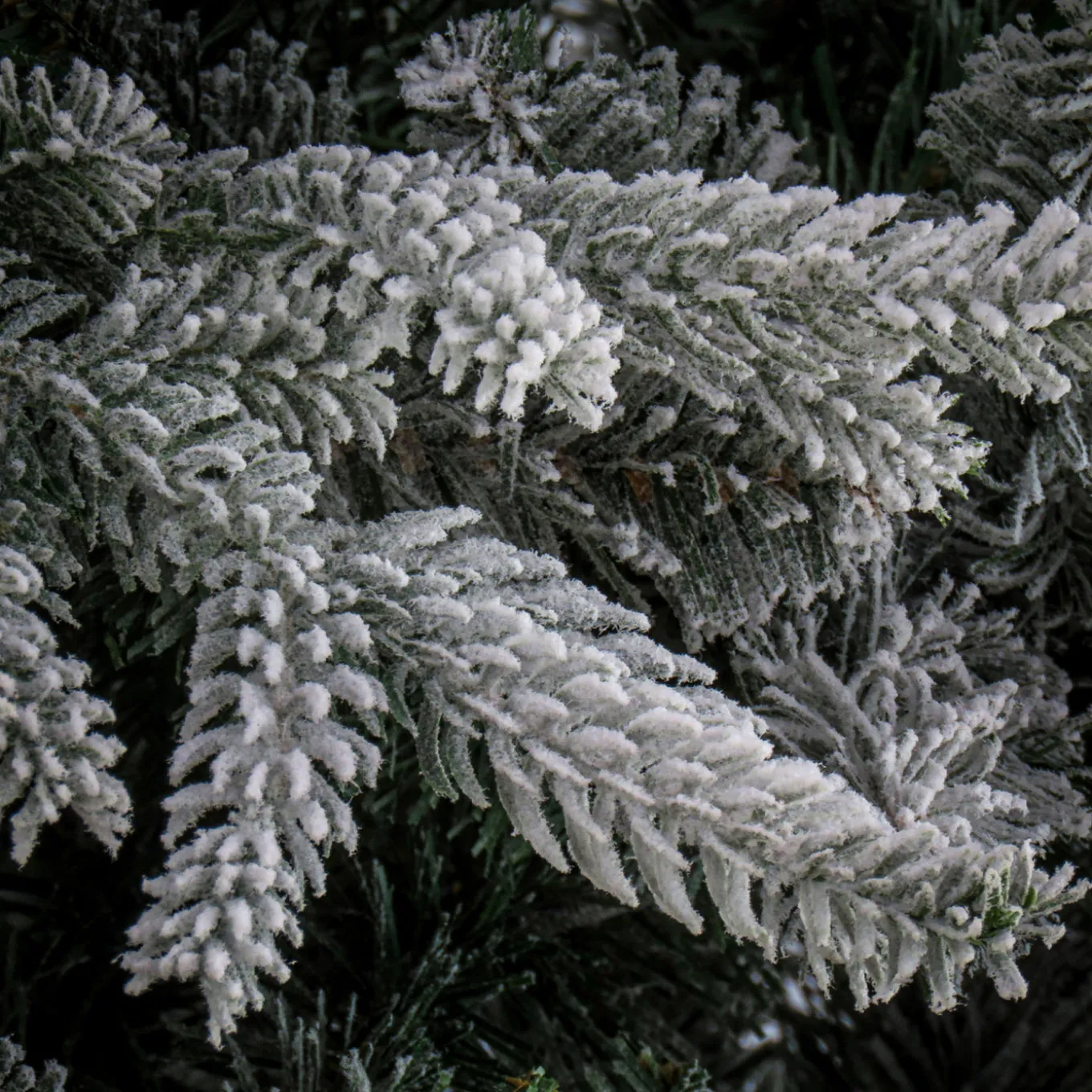 This Holliston tree features Feel Real branch tip technology, creating a tree with remarkable realism. These crush-resistant branch tips are molded from real tree branches for an authentic living tree appearance. It features flocked branches, adding to its snowy charm and making it a stunning centerpiece for your holiday decor. Perfect for creating a cozy, festive atmosphere! Designed with hinged branches for easy assembly and includes a sturdy metal folding stand. For indoor display only.