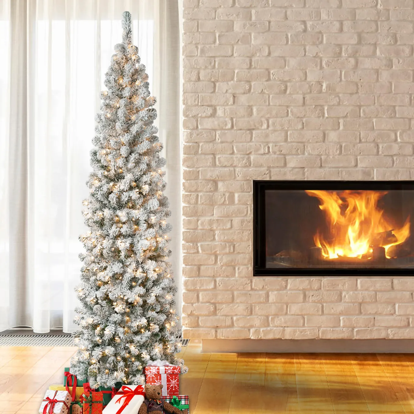 Be the first to review “7.5 ft. Pre-Lit Acacia Pencil Slim Flocked Tree with Clear Lights” Cancel reply
