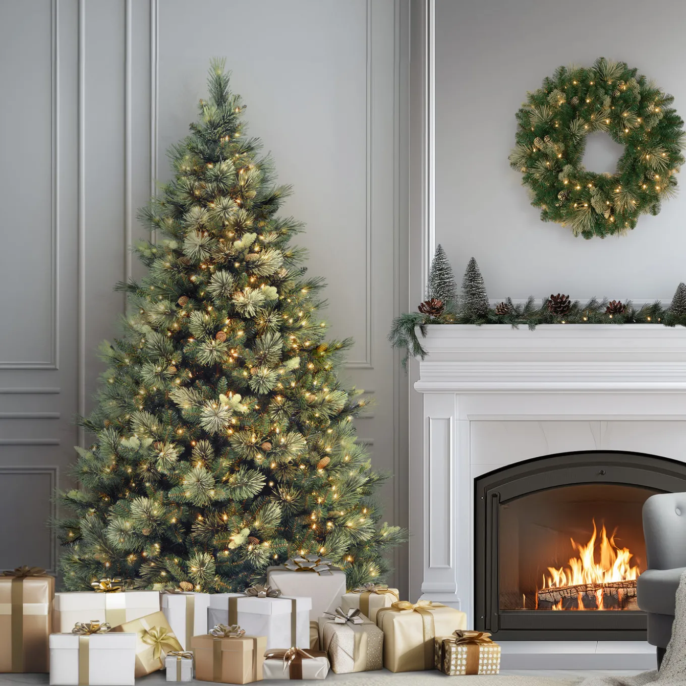 7.5 ft. Pre-Lit Carolina Pine Tree with 1000 Clear Lights