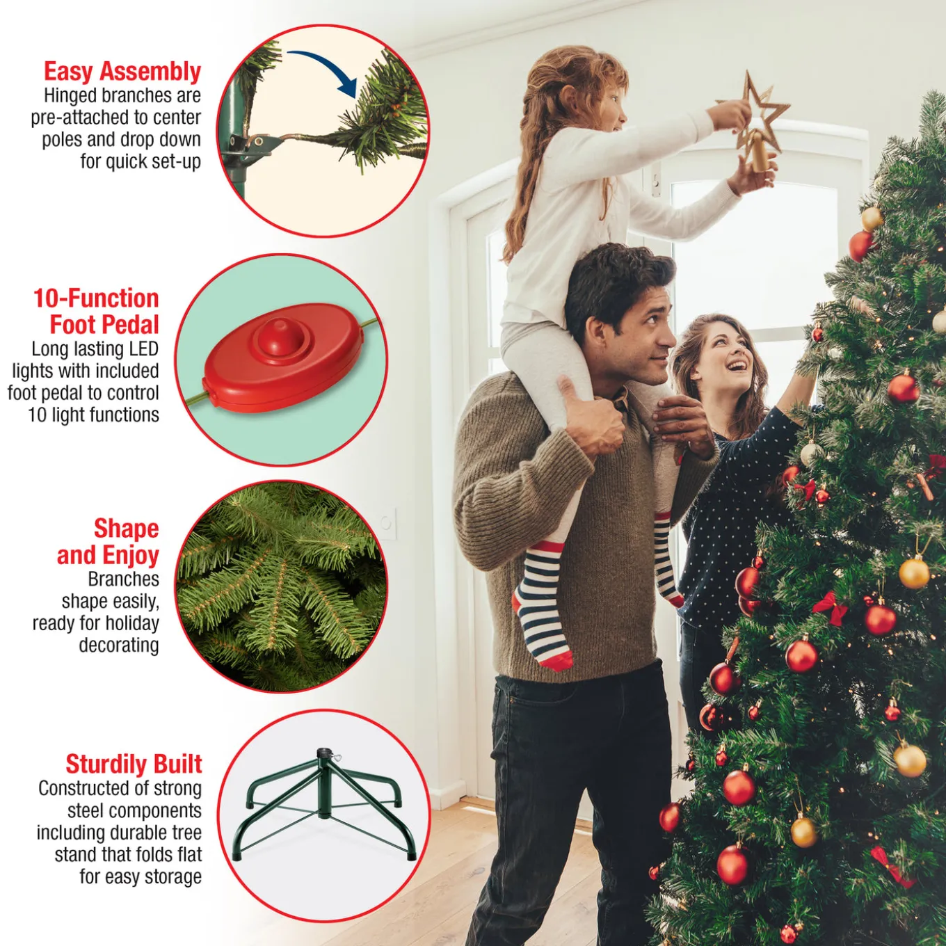 Hundreds of crush-resistant polyethylene tips form full bodied branches, creating a tree with remarkable realism.