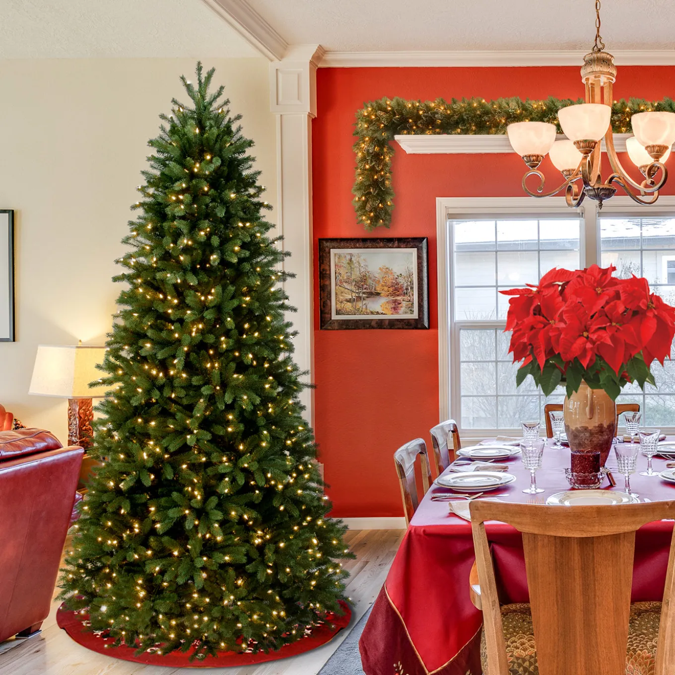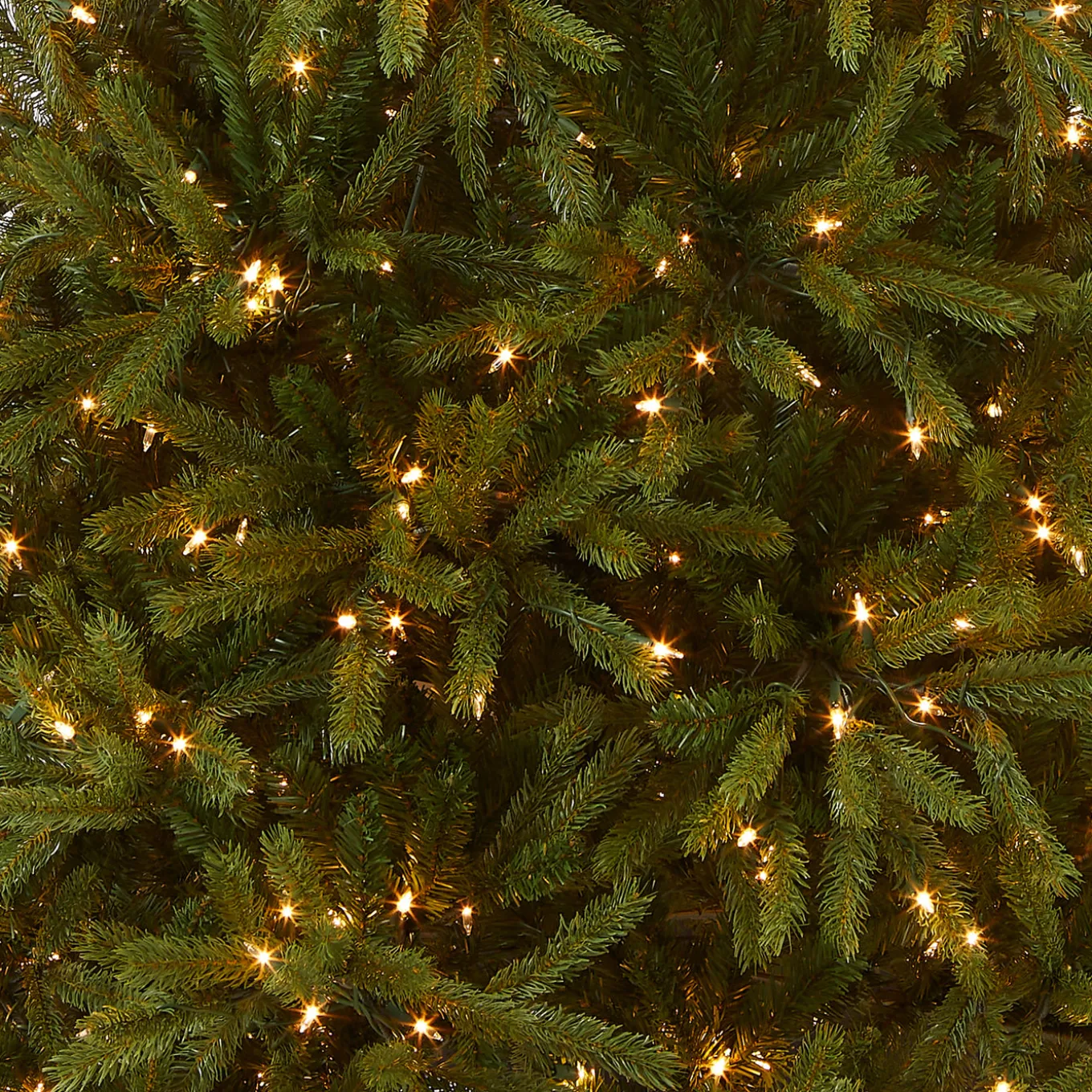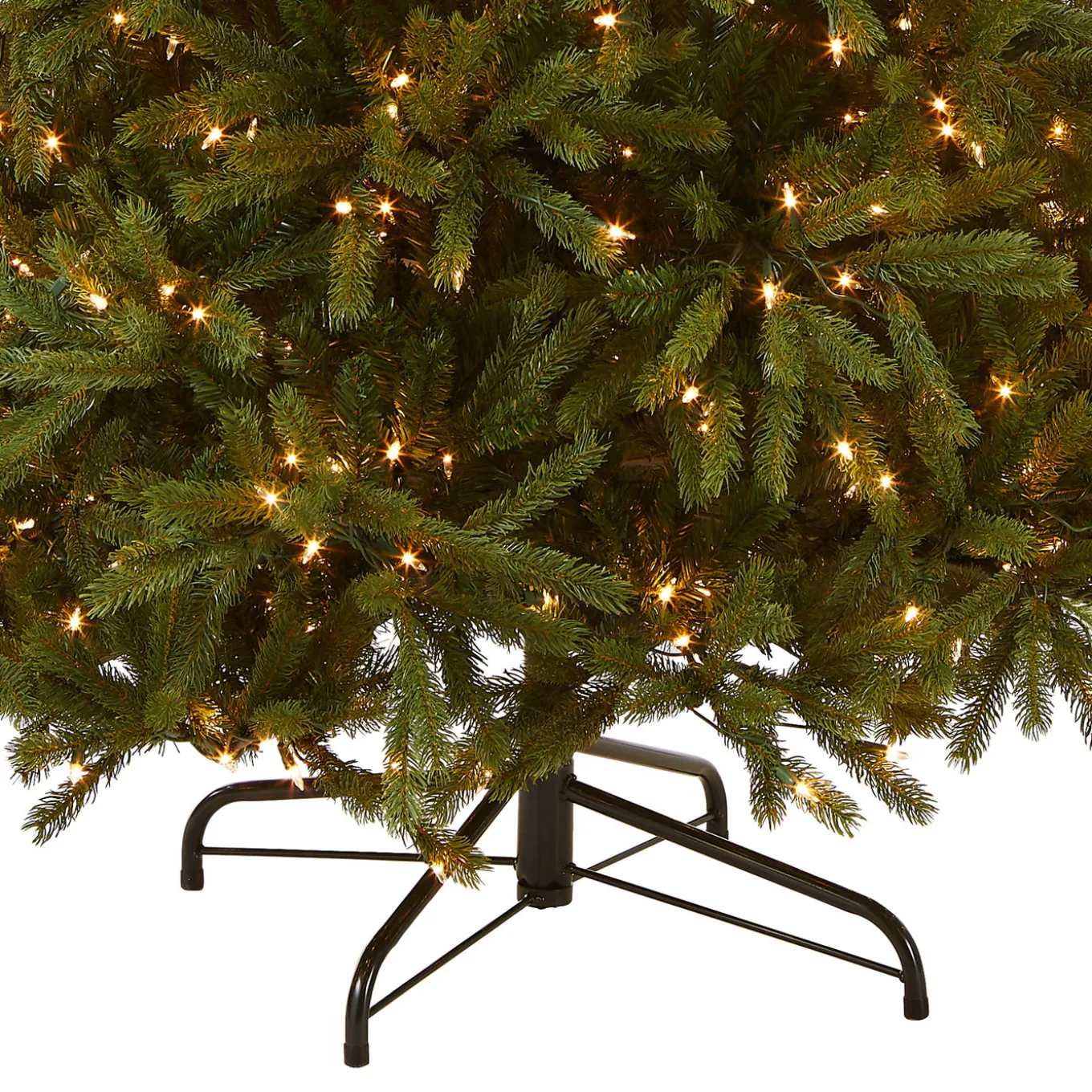 This Jersey Fraser Fir tree features Feel Real branch tip technology, creating a tree with remarkable realism. These crush-resistant branch tips are molded from real tree branches for an authentic living tree appearance. This full-bodied tree is pre-strung with 800 clear lights that remain lit even if a bulb burns out. The slim profile allows for a better fit in corners or limited space areas. This tree features hinged branch construction for ease of assembly. Sturdy metal tree stand is included.