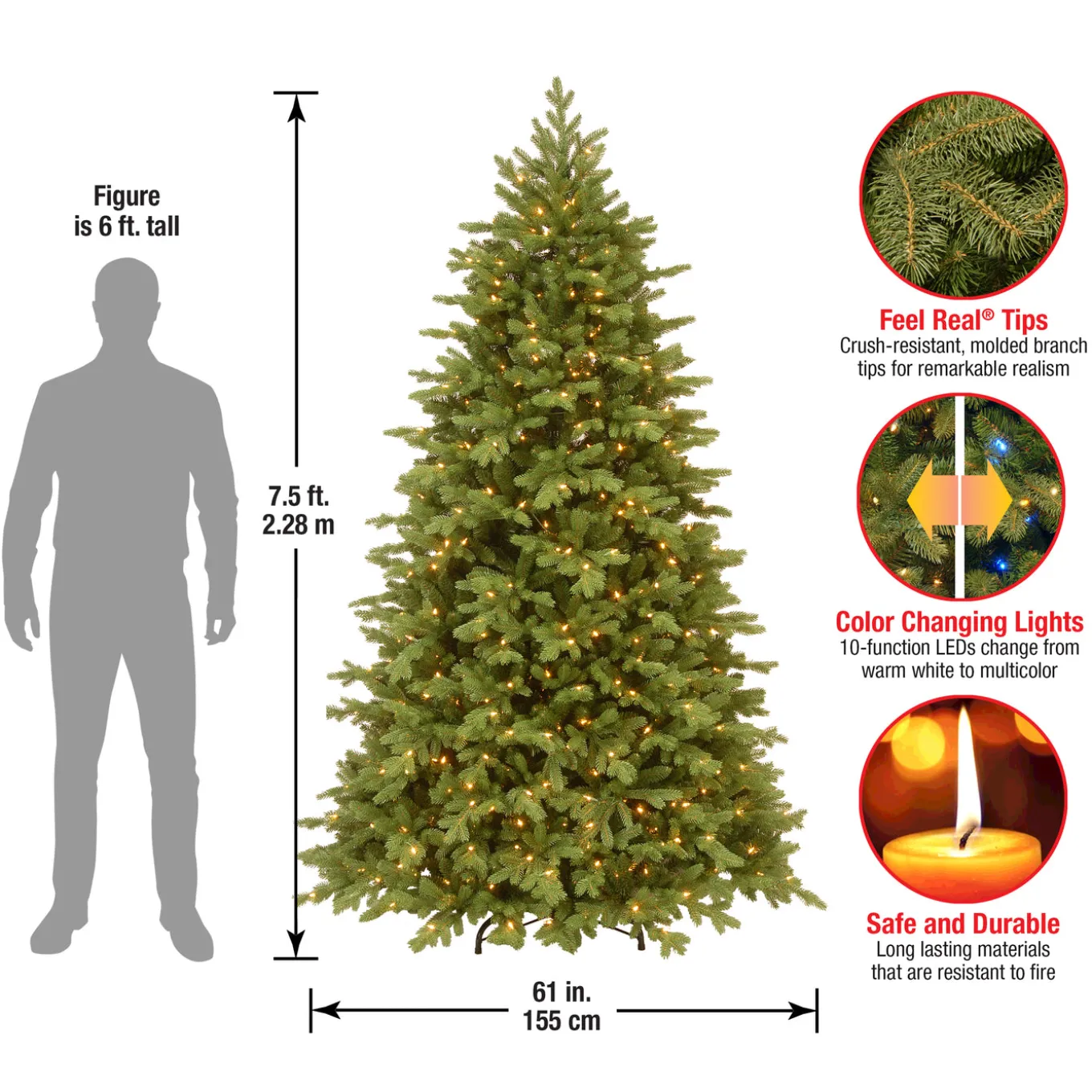 Hundreds of crush-resistant polyethylene tips form full bodied branches, creating a tree with remarkable realism.