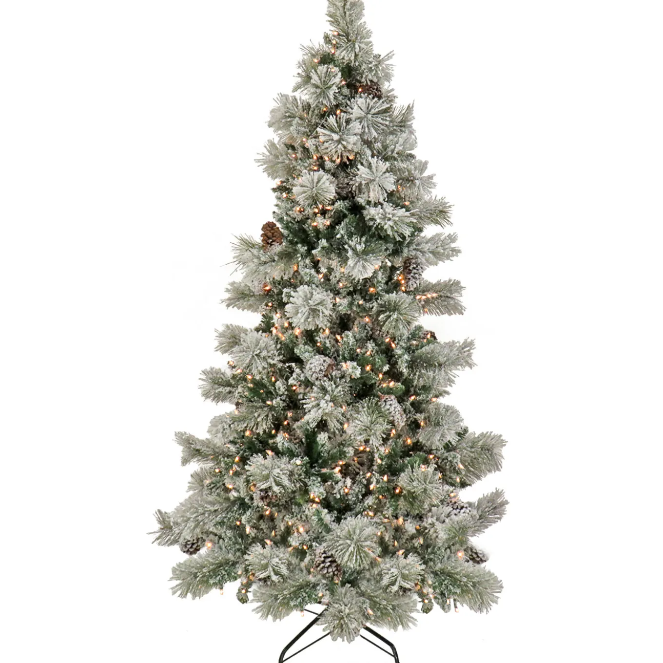 The Snowy Yorkshire tree is a mixed bristle tree that features flocked branches for the look of freshly fallen snow. It is pre-lit with 750 clear lights that remain lit even if a bulb burns out. Crafted with high quality materials and hinged branches for easy set up and includes a sturdy metal folding stand. For indoor display only.