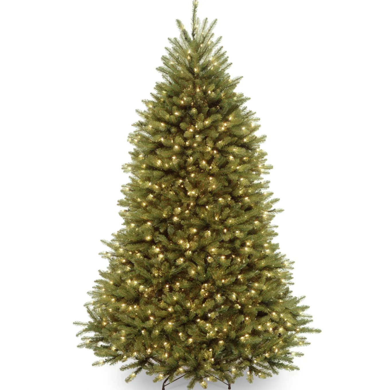This Dunhill Fir tree features the PowerConnect through-the-pole lighting system that eliminates the need for connecting multiple light strings. It is pre-strung with 650 Dual Colorlights that change from warm white to multicolor with the touch of a button. Included is a foot pedal switch to control 10 different light colors and actions. This tree features hinged branch construction for ease of assembly. Sturdy metal tree stand is included.